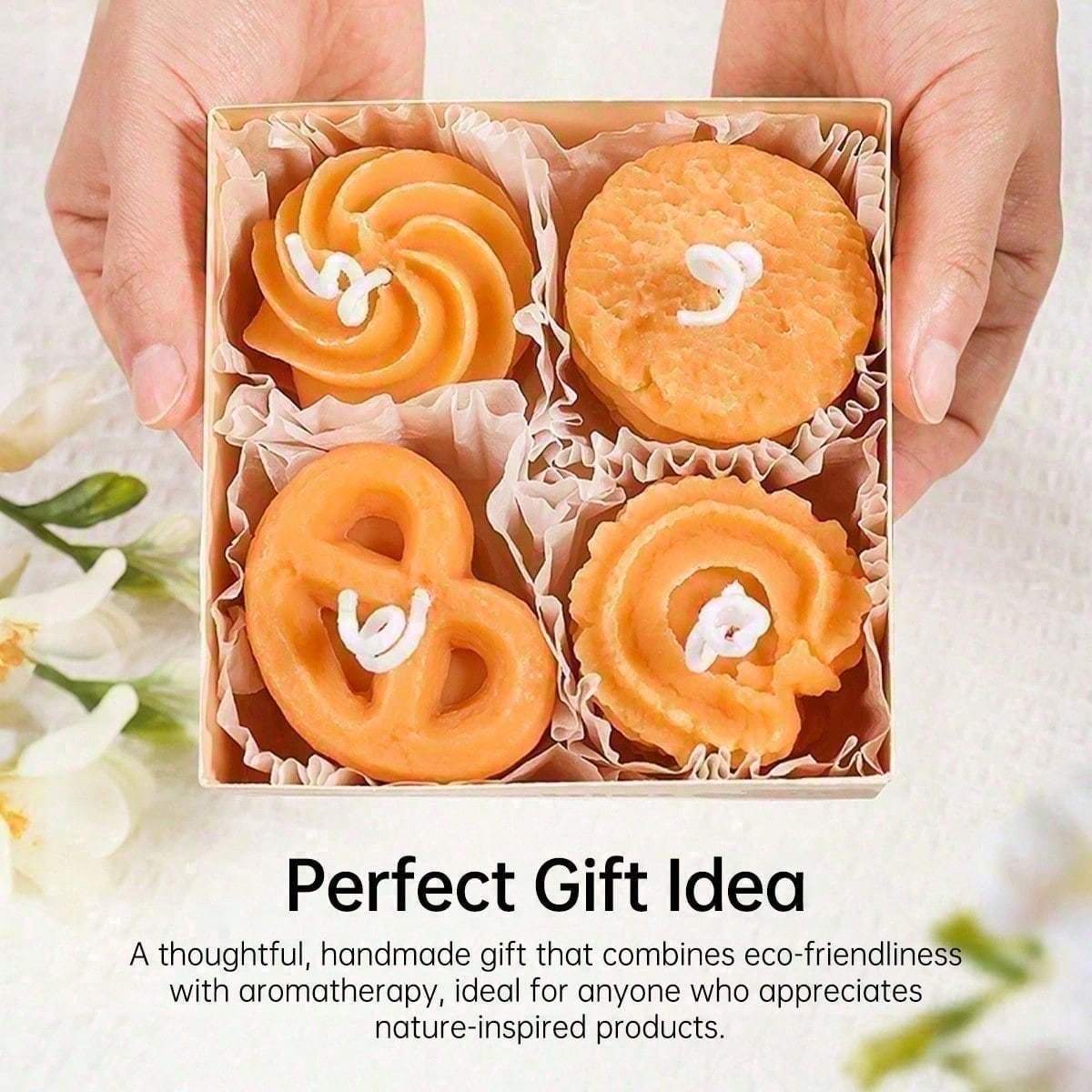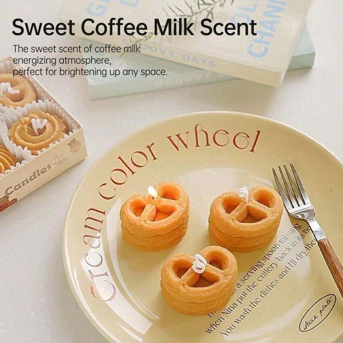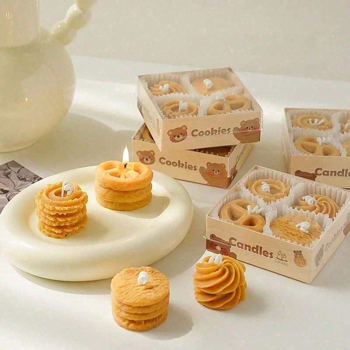 Bring cozy charm to your space with this 4-piece cookie-shaped scented candle set. Infused with a sweet coffee milk fragrance, these handmade soy wax candles deliver a clean, smoke-free burn. Their realistic cookie design makes them a perfect accent for room dr, bathroom shelves, or kitchen styling. -friendly and long-lasting, they’re also a delightful gift idea for anyone who loves adorable home accents and aromatic candles.