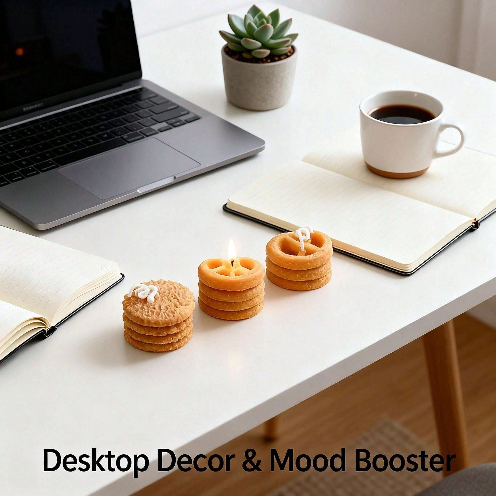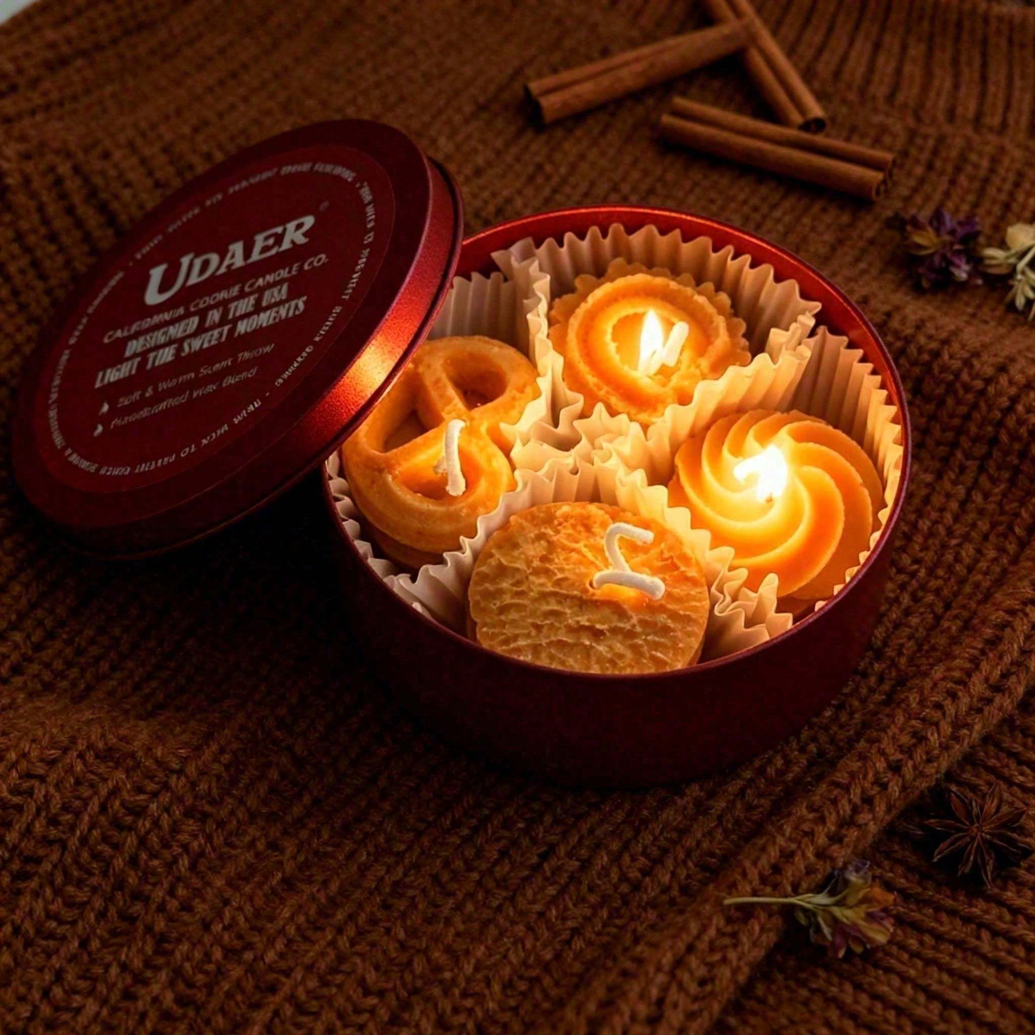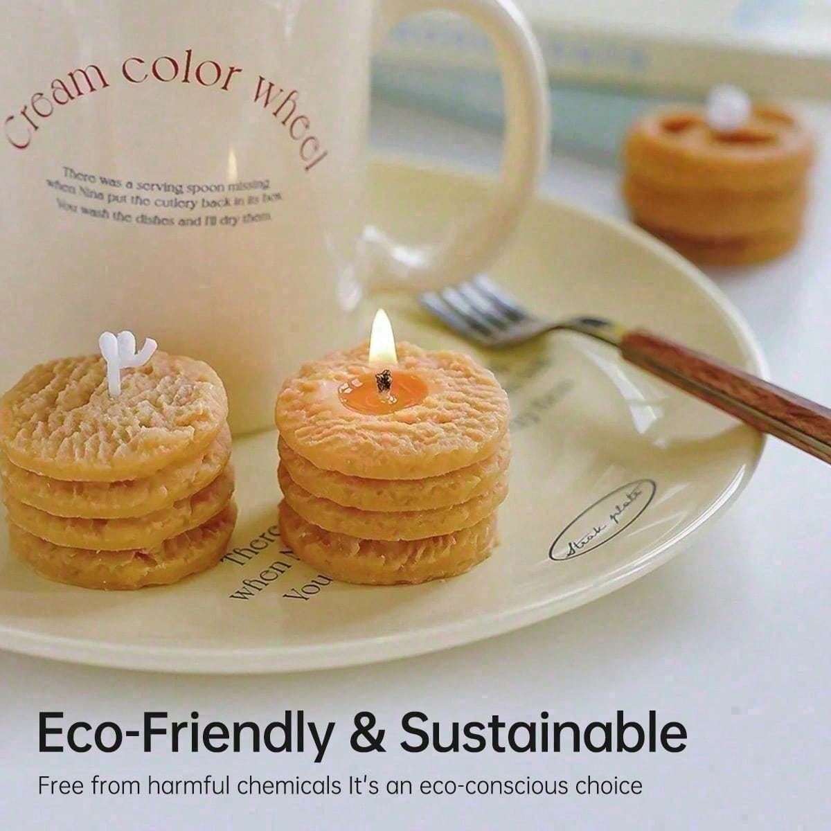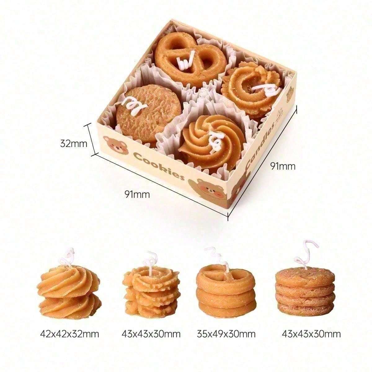 Bring cozy charm to your space with this 4-piece cookie-shaped scented candle set. Infused with a sweet coffee milk fragrance, these handmade soy wax candles deliver a clean, smoke-free burn. Their realistic cookie design makes them a perfect accent for room dr, bathroom shelves, or kitchen styling. -friendly and long-lasting, they’re also a delightful gift idea for anyone who loves adorable home accents and aromatic candles.